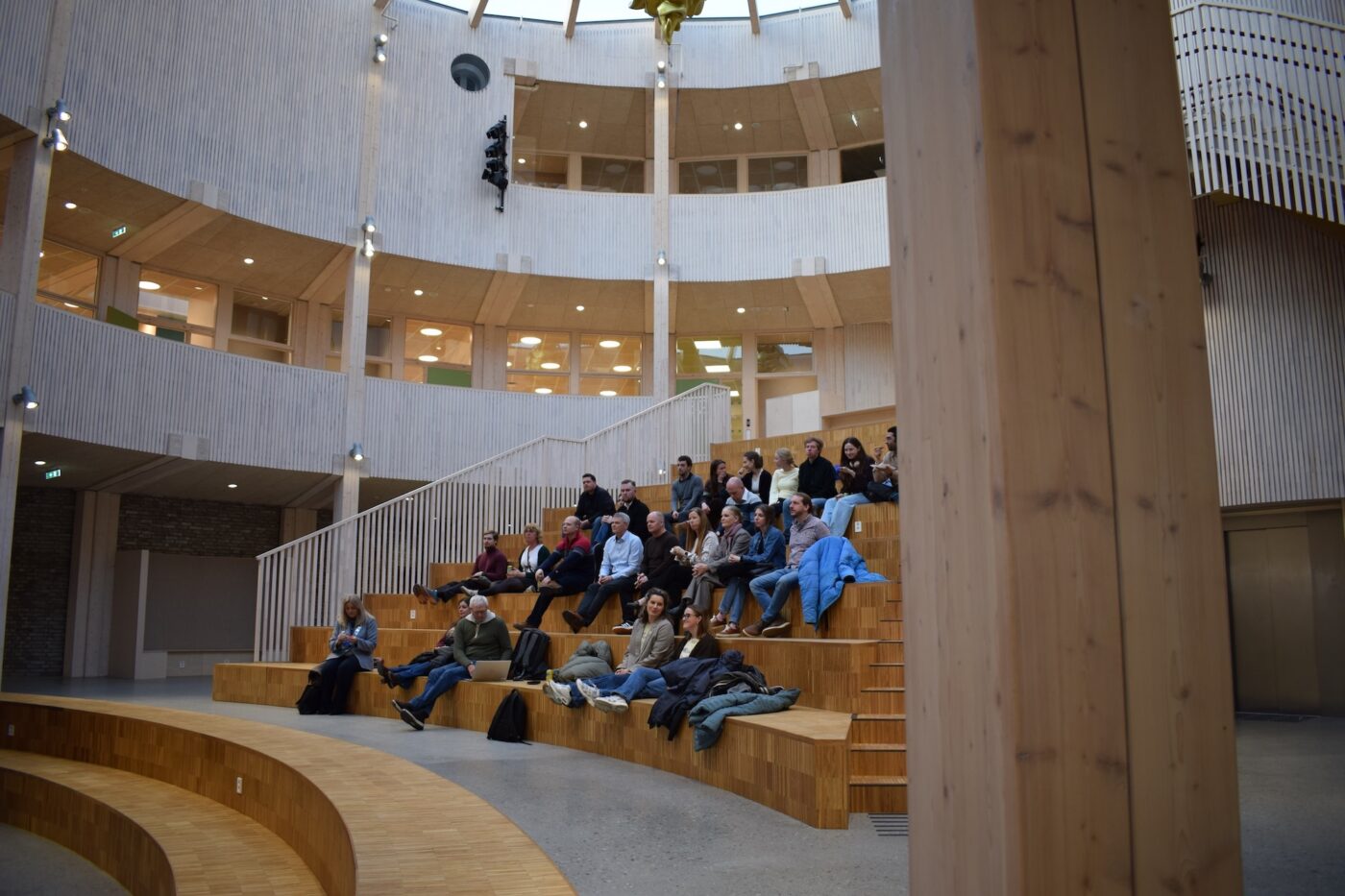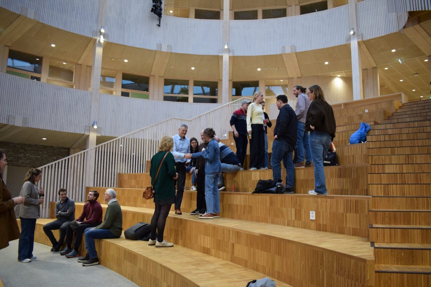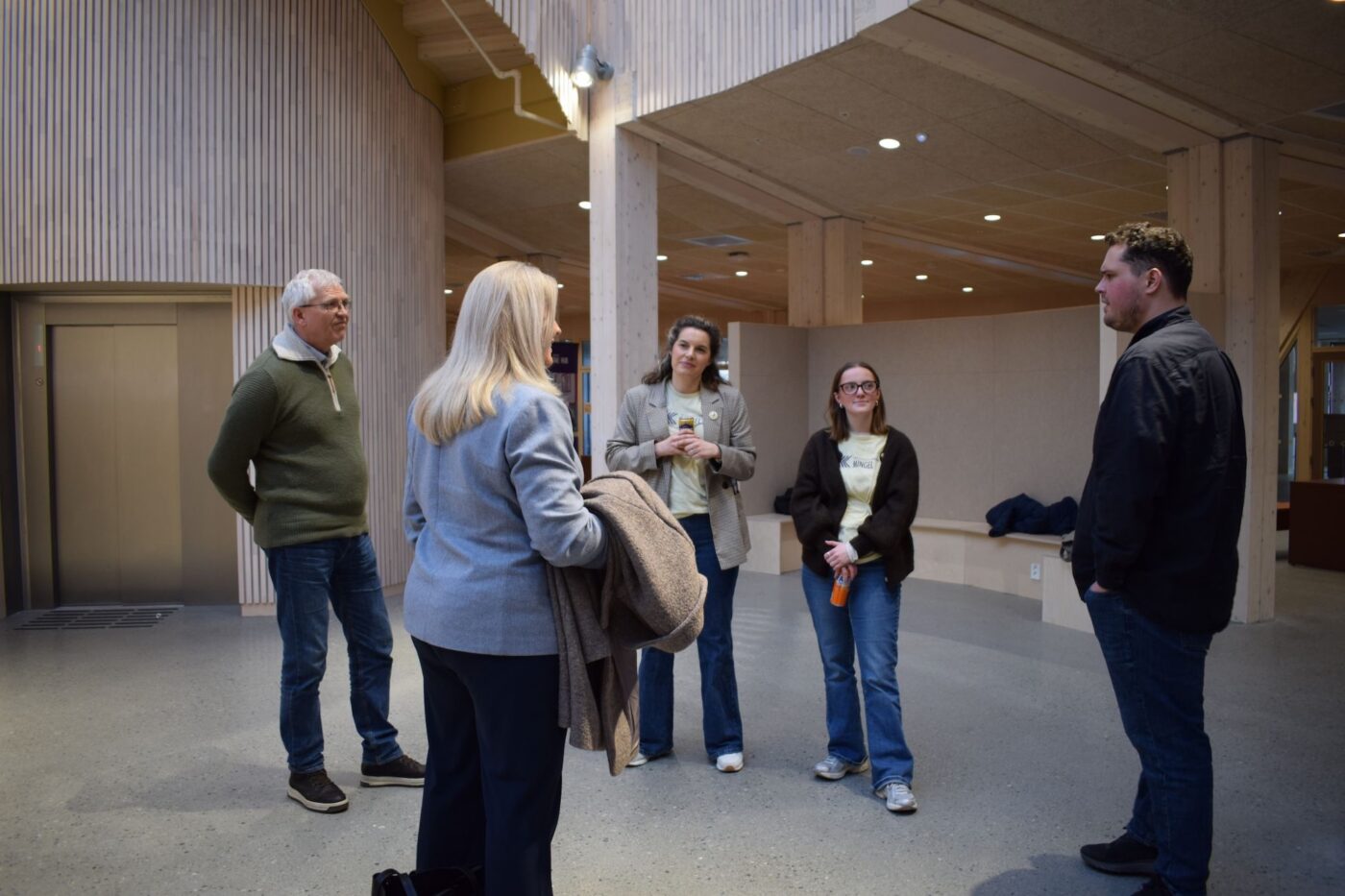 Ettermiddagen startet med pizza og mingling, der deltakerne fikk tid til å bli kjent og slå av en prat. Mange var også nysgjerrige på å få ta en nærmere titt på den nye ungdomsskolen, som åpnet i høst. Det sirkelformede bygget har et lyst hjerterom under en stor glasskuppel, og dannet en flott ramme for kveldens arrangement.
