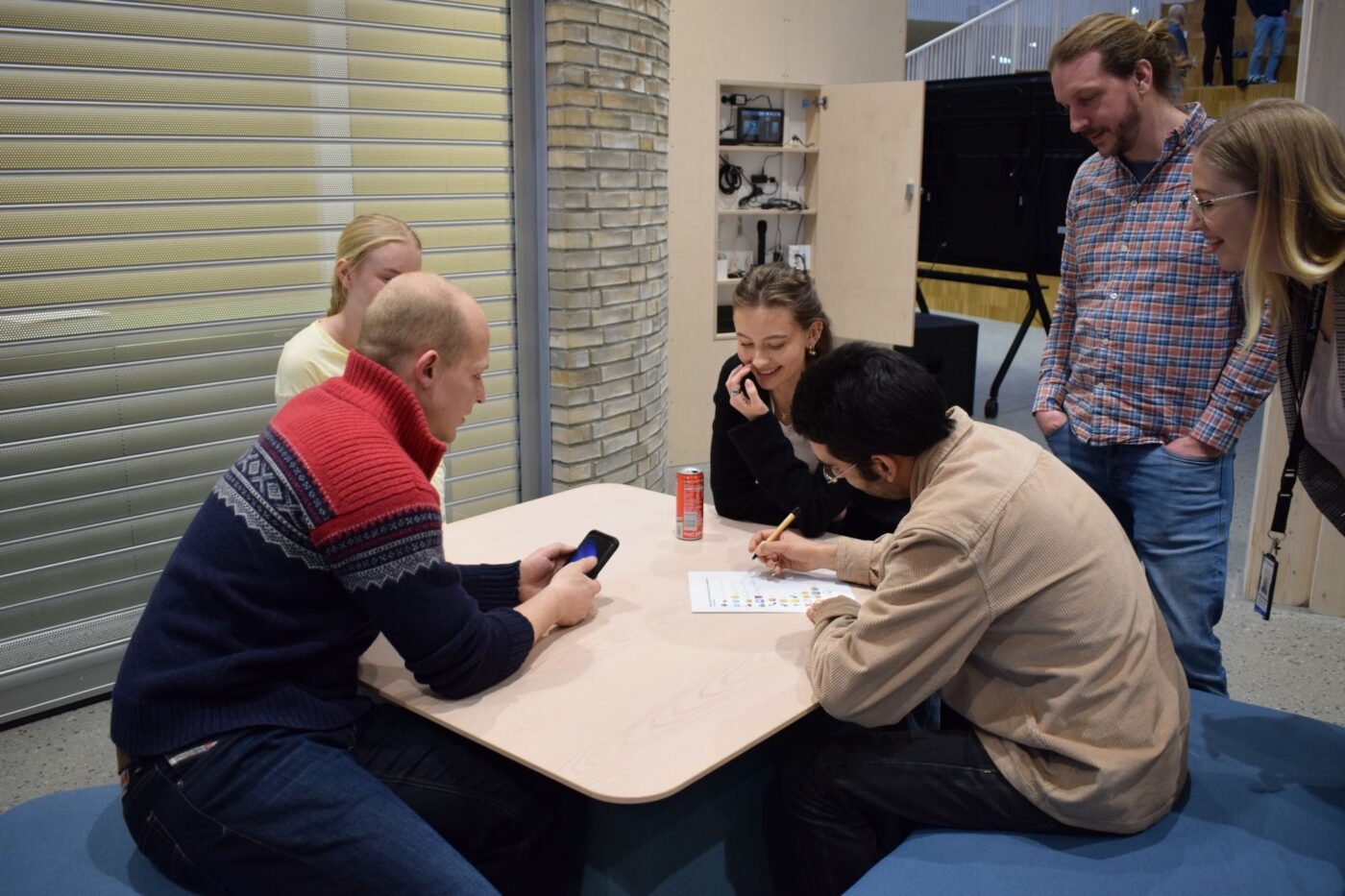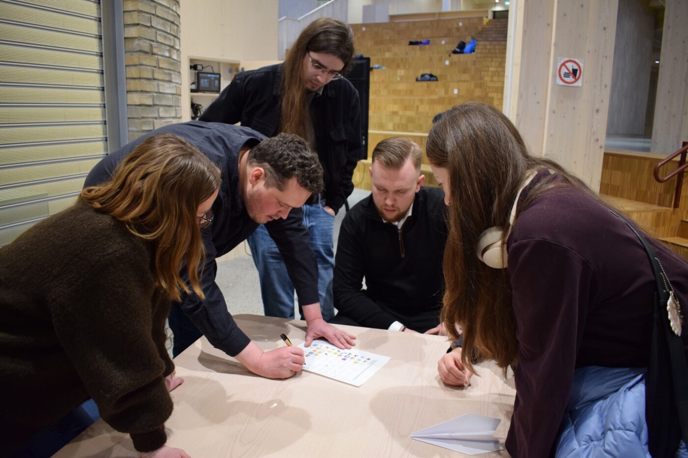 Etter presentasjonene var det klart for kveldens rebusløp rundt på skolen. Her fikk deltakerne bryne seg på flere kreative oppgaver – blant annet å bygge det lengst-flyvende papirflyet og konstruere tårn av spaghetti og marshmallow.