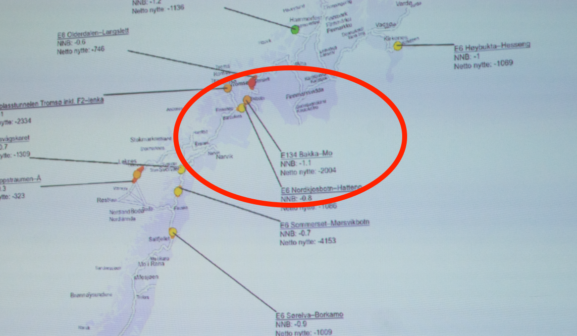 For å illustrere hvor lett regionen kan bli oversett i nasjonale prosesser, viste Damman til Statens vegvesens eget kart over prioriterte prosjekter, publisert i 2025. Der er E134 Bakka–Mo plassert i Troms (!). Selv om det åpenbart må bero på en feil, ble eksempelet ble brukt for å understreke hvor viktig det er å holde prosjekter varme politisk og bygge kunnskap om hvorfor de betyr noe for regionen.