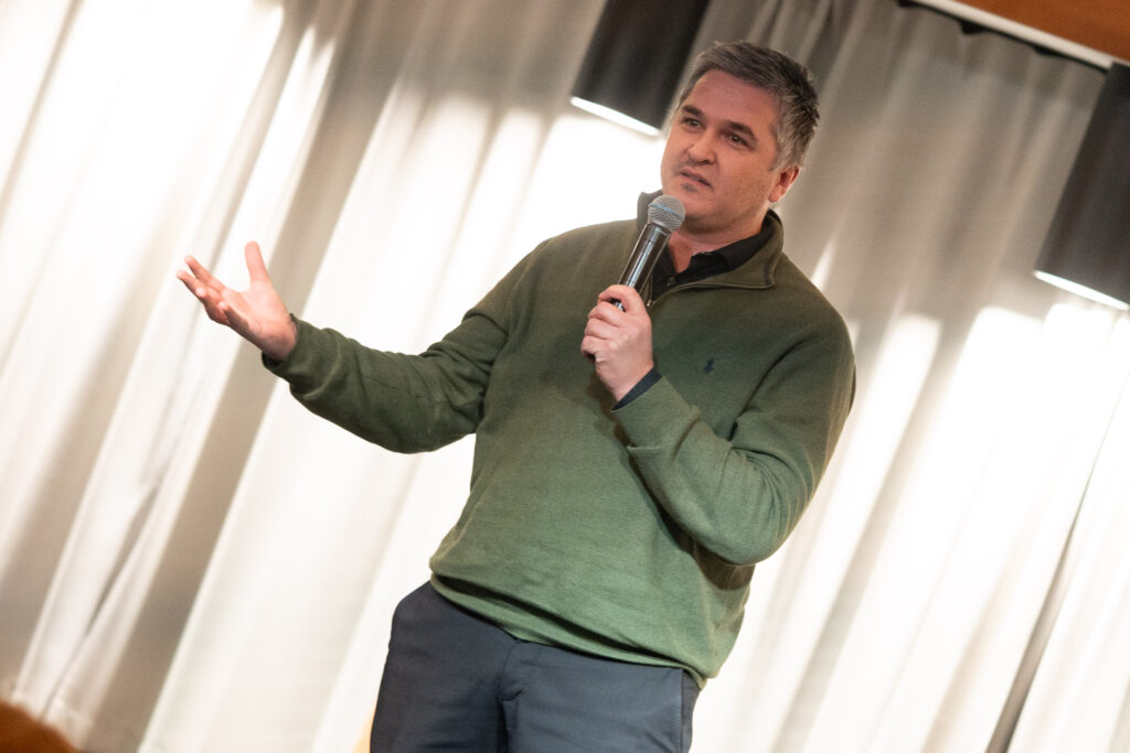 Henning Aarekol had the entire audience laughing with humorous and insightful reflections on Haugalandet and its people. Photo: Torstein Tysvær Nymoen/Haugaland Vekst.